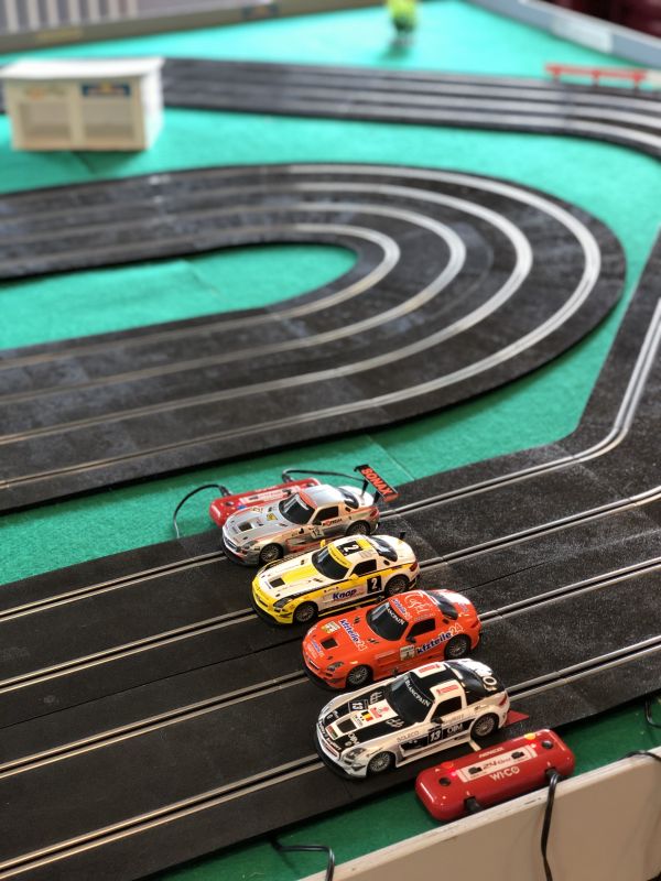 Animation pour petits et grands avec 4 voitures au 1/32 très réalistes, personnalisation de la piste et des voitures à votre marque.
