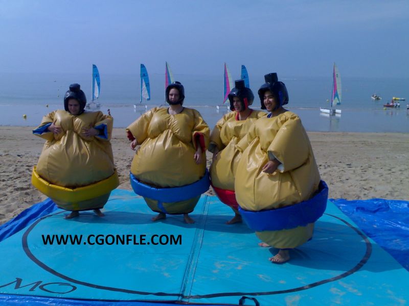 C Gonflé Loisirs propose des costumes de sumotoris en mousse, facile à mettre et à enlever. Une fois le costume enfilé, le jeu est tout simple : il vous faut mettre à terre votre adversaire sur le tapis (que nous fournissons également).